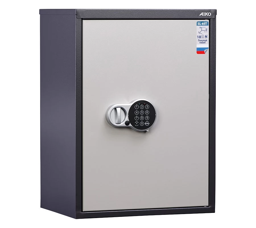 Шкаф Aiko SL-65Т EL – это прочное сварное изделие из стальных листов толщиной 1.2 мм. На дверь устанавливается электронный замок PLS-1 с возможностью аварийного открывания, для чего прилагается мастер-ключ. Для питания требуется четыре батарейки 1.5 В; имеется индикатор, уведомляющий о потере напряжения. В случае разрядки батарей код не меняется.