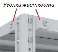 - Уголки жёсткости крепятся на нижней и верхней полках в двух направлениях, во взаимно перпендикулярных вертикальных плоскостях (см. фото).