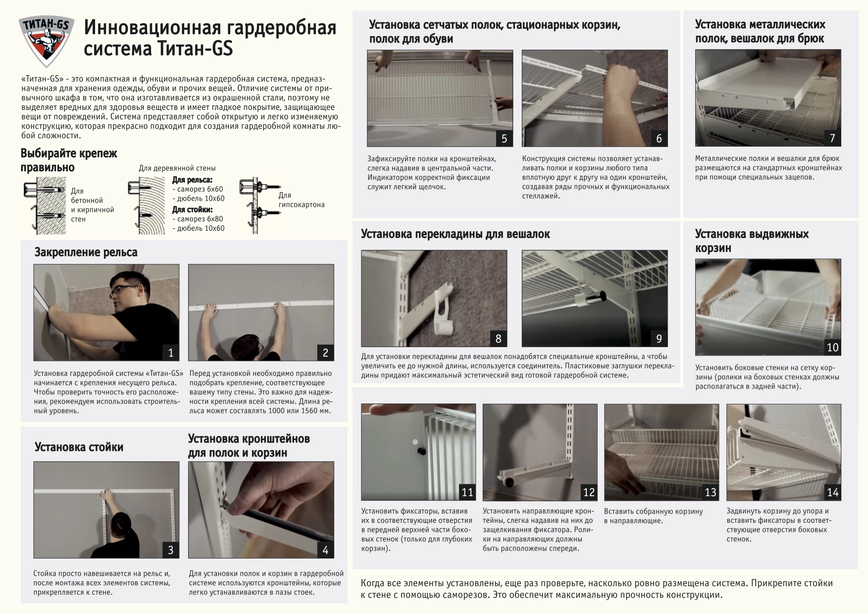 Гардеробная система Титан-GS 600 450 – это современный подход к хранению одежды и личных вещей, который позволяет эффективно использовать полезную площадь помещений практически с любыми техническими особенностями. Титан-GS 600 450 является уже готовым комплектом с определённым набором комплектующих и станет отличным решением для обустройства гардеробной комнаты или прихожей.